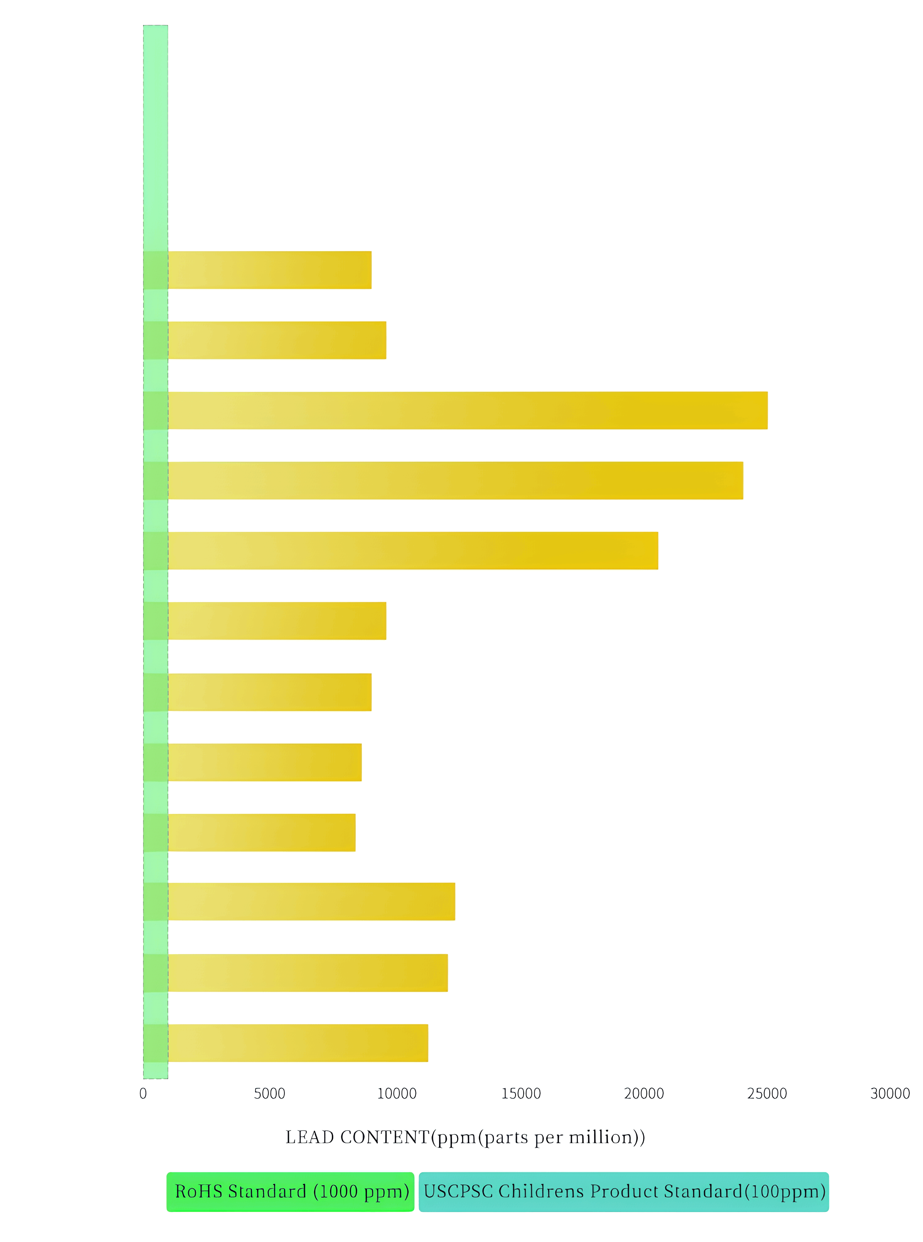 We used a US CPSC certified laboratory to test these fakes for lead,and in the chart below, you can see the results.